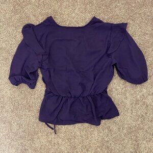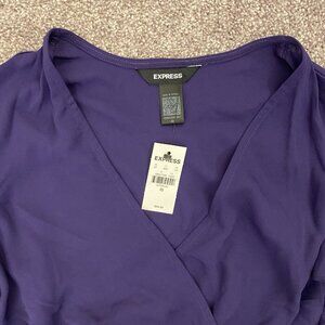 Express Women's Faux Wrap Puff Sleeve Peplum Top – Olympian Blue – Size XS – NWT – MSRP $54