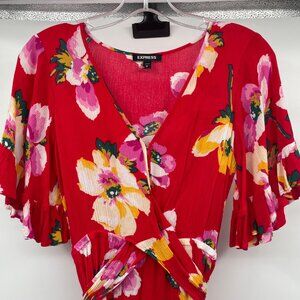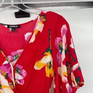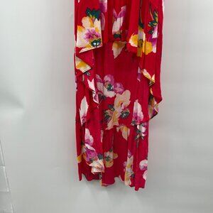 Express Womens Floral Hi Low Wrap Dress Short Sleeve Red/Multi Size XS