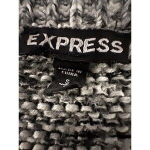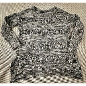Express Womens Fringe Sweater Gray Tunic Size S Marled Chunky Knit Black White