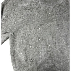 Express Womens Fuzzy Gray Oversized Sweater Soft Rhinestones V Neck Size XS