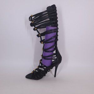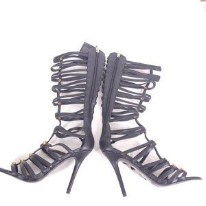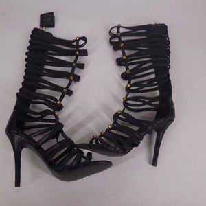 Express Womens Gladiator Studded Stiletto Heel Sandals Synthetic Zip Black 6.5