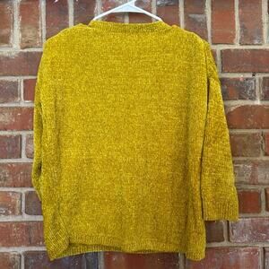 Express Women's Gold Mustard Chenille V-Neck 3/4 Sleeve Knit Pullover Sweater SP