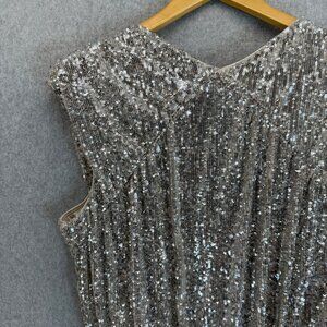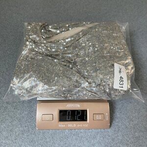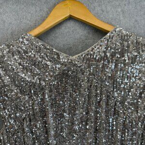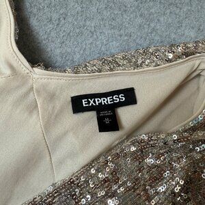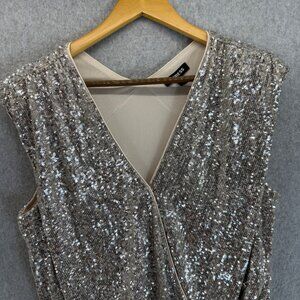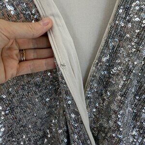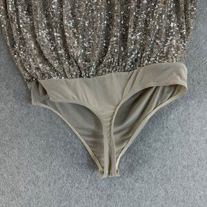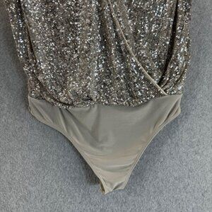 Express Womens Gold Silver Sequin Body Suit V-Neck Short Sleeve Date Size Medium