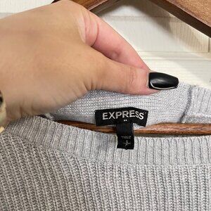 Express Womens Gray Knit Ribbed 3/4 Sleeve Cropped Cut Out Back Sweater Small. Measurements Underarm to underarm: 22" Length: 18" Sleeve: 14" Offers always welcome! Measurements are approximations taken while hanging