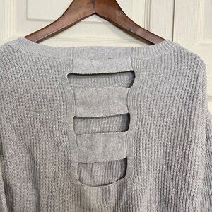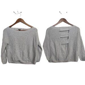 Express Womens Gray Knit Ribbed 3/4 Sleeve Cropped Cut Out Back Sweater Small