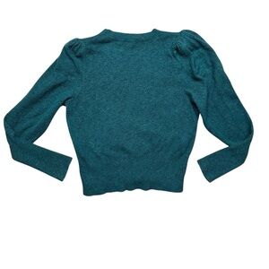 Express Women's Green Puff Sleeve Cardigan Sweater L Jewel Accents Preppy