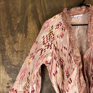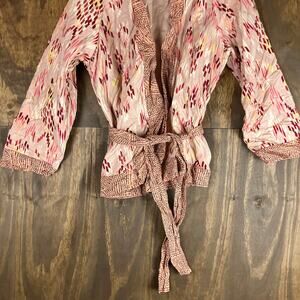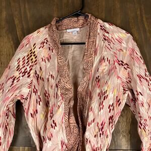 Express Womens Jacket Multicolor Quilted Open Front Belted Cotton Blend Small
