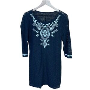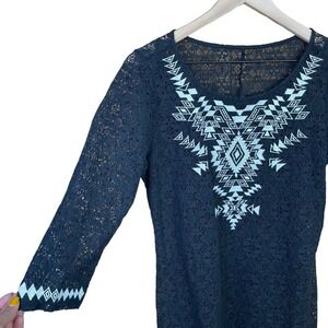 Express Womens Large Mini Dress Lace Sheer Sleeve Boho Cottage Core Summer Beach