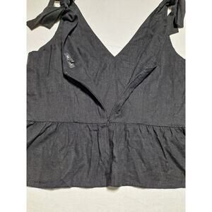Express Women's Large Sleeveless Peplum Top Black Linen Blend Zipper Back