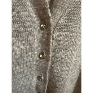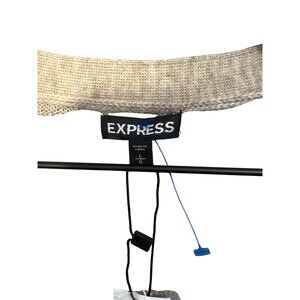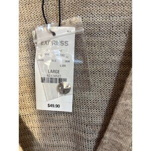 This cardigan from Express offers a blend of style and comfort, featuring a shimmering button-up design. Its neutral beige tone makes it a versatile addition to any wardrobe. The luxurious fabric mix ensures warmth and softness.