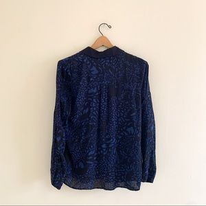 Express Womens Leopard Print Button Down Top Blue Black Small S