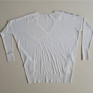Express leopard print pullover sweater is utter purrfection in a trendy leopard print. This super soft sweater has a v-neckline and dropped shoulders for a relaxed and comfortable fit. The hi-low hemline is accented with zipper detailing at both sides of the too. Equally alluring with jeans, pants or a pencil skirt for a classic look that's both comfortable and timeless. There is a faint spot, as shown in last photo, on the right sleeve, and other than this, it's in very nice condition.