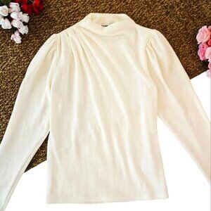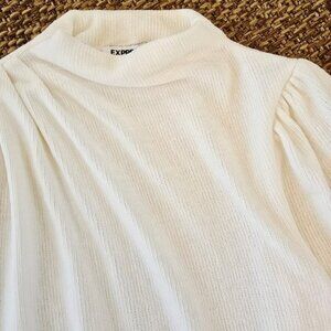 Express Women's Light Cream Sweater Size XS Pleated Mock Turtleneck Soft Office