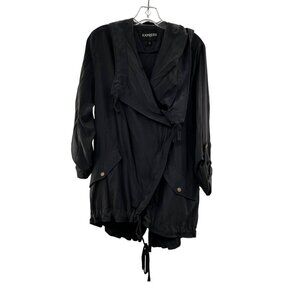 Express Women's Lightweight Hooded Jacket Long Roll Tab Sleeve Gray Size XS