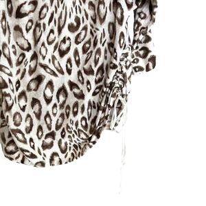 Express Women's Lightweight Sweater Large Ivory Tan Animal Print Ruched Side Tie
