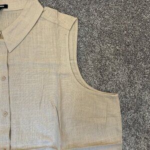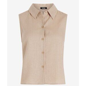 Express Women's Linen-Blend Sleeveless Button Up Shirt Beige Size XL NWT $54