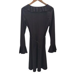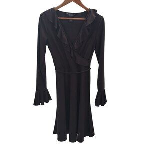Express Womens Long Bell Sleeve Surplice Ruffle Dress Sz 5/6 Brown Midi V-Neck