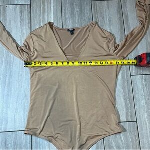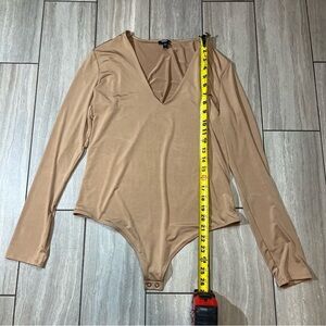 Express Womens Long Sleeve body contour body suit in Nude Size Large