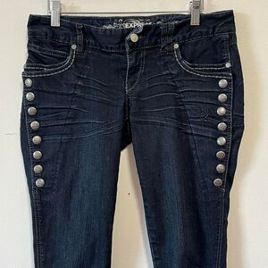 Express Womens Low Rise Snap Detail Dark Wash Stretch Skinny Jeans 2010 Size 6