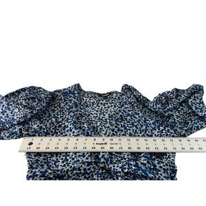 Express Women's Medium Blue Black Blouse Abstract Print Long Sleeve V-Neck