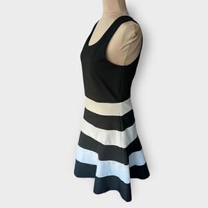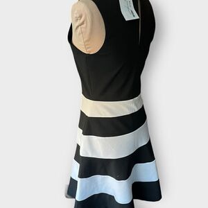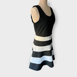 Express Women’s Medium Fit & Flare Black & Multi Color Striped Midi Dress