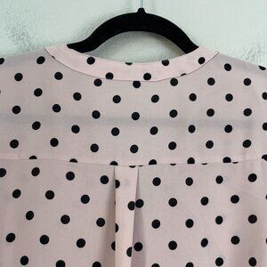 Express Womens Medium Polka Dot Zipper Blouse Blush Pink Roll Tab Sleeve Shirt