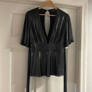 Express Women’s Metallic Flutter Sleeve Top NWOT