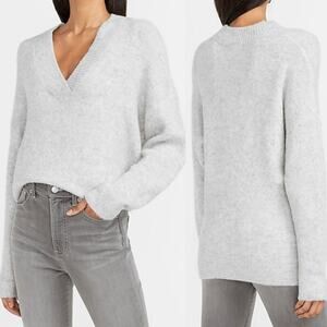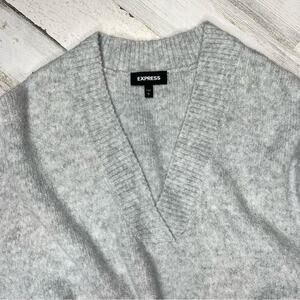 Express Metallic Slouchy V-Neck Tunic Sweater Gray Marled - Size Large - EUC