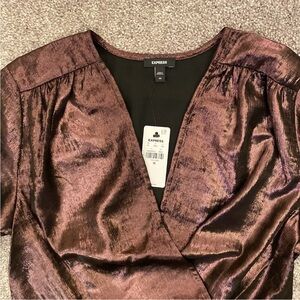 Express Women's Metallic V-Neck Balloon Sleeve Faux Wrap Top – Ginger – Size XS – NWT – MSRP $68