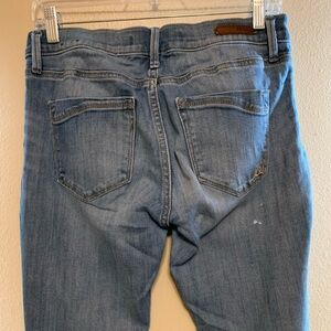Good condition. No rips, tears, holes, odors, etc. Small stain on butt, pictured. Fabric has stretch.