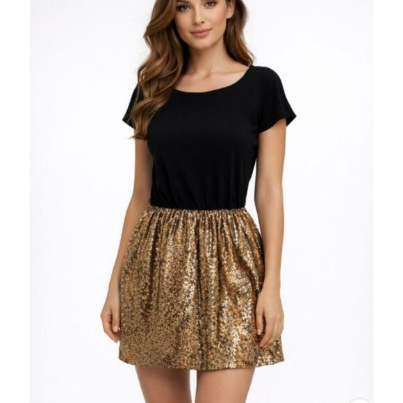 Express Women's Mini Dress Size XS Black Gold Sequins Cocktail Party Evening