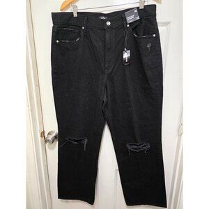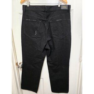 Express Womens Modern Straight Super High Rise Distressed Black Jeans Size 14S C
