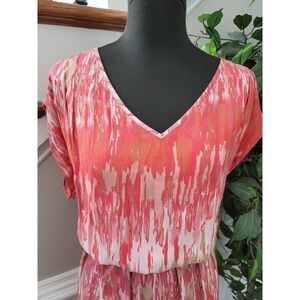 Express Womens Multicolor Polyester V-Neck Short Sleeve Knee Length Dress Size M.