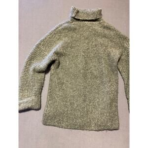 Express cozy cowl neck sweater in a beautiful olive green shade. Made from a soft blend of 59% polyester, 29% acrylic, 9% wool, and 3% spandex, offering warmth with a slight stretch. Size L, this sweater has a relaxed fit and a high neck for a snug feel. Perfect for cooler days, it’s a versatile piece that pairs well with jeans or leggings.
