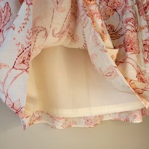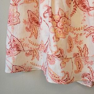 Express Ivory Pink/Orange Linen Blend Paisley Floral Tiered Ruffle Mini Skirt