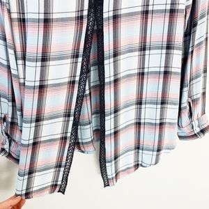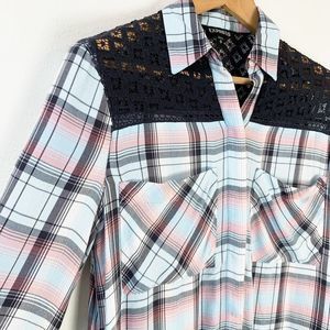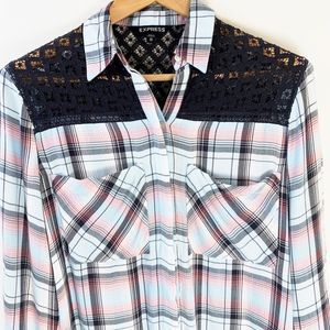 Express Women's Plaid Crochet Button Up Shirt
