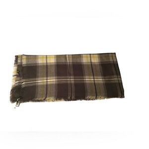 Express Womens Plaid Print Scarf Wrap Wrap Academia Grey Yellow Cabincore Fringe