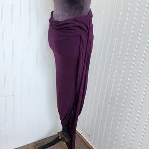 Express Womens Plum High Waisted Draped Midi Jersey Stretch Skirt Sz M Sk7