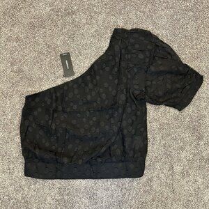 Express Women’s Polka Dot One Shoulder Banded Bottom Top Black Size XS NWT $68