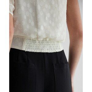 🤍 Flirty meets chic! This Express one-shoulder blouse, crafted from delicate clip dot fabric with a stretch banded bottom, is perfect for a casual day at the office or a stylish night out.
