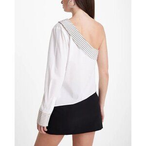 Express Women's Poplin Striped Collar One Shoulder Draped Top – White – Size XL – NWT – MSRP $68