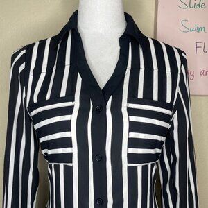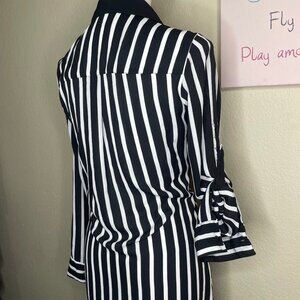 Express Women's Portofino Black White Striped Shirt Dress Roll Tab Sleeve XS