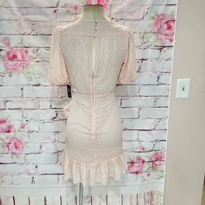 Express Women's Puff Sleeves Wrap Ruffled Swiss Dot Light Pink Dress Size XXS NWT