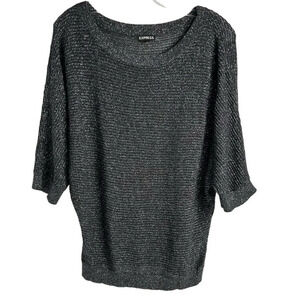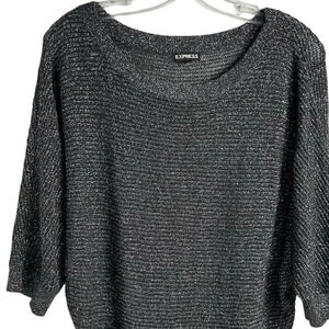 Express Women's Pullover Sweater L Gray Metallic 3/4 Sleeve