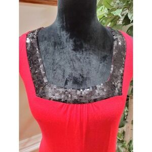 Express Womens Red Modal Sleeveless Square Neck Sequin Knee Length Dress Medium.