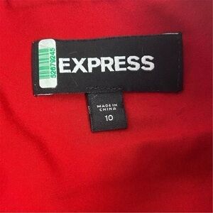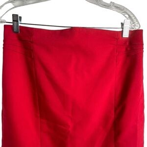 Keywords: Express, skirt, women's fashion, knee-length, pencil skirt, red skirt, polyester, elegant design, classic silhouette, machine washable, size 10, pre-owned, solid pattern, women's clothing, versatile wear.