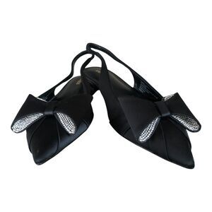 Express Women's Rhinestone Embellished Bow Pointed Toe Slip On Flats Black Sz 8