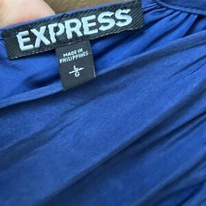 Elegant royal blue dress by Express. Features black lace accents. Ideal for stylish outings.