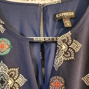 Express Women's Royal Navy Blue Patterned Printed Dress Size Medium