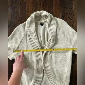 Express Women’s S Beige/White Knit Short-Sleeve Open-Front Sweater